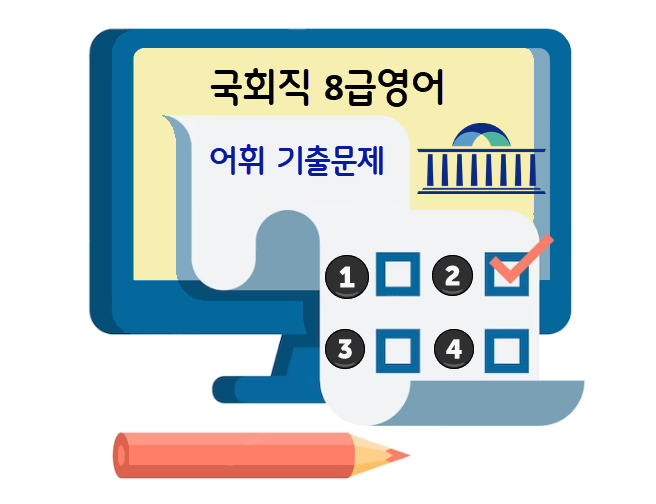 국회직 8급영어 어휘문제의 난이도는 공인영어로 대체되기 이전의 7급영어 수준하고 비슷하고, 9급 공무원영어에 출제될 가능성이 희박하므로, 9급 공무원 수험생들은 참고하는 정도로 여기시면 됩니다.